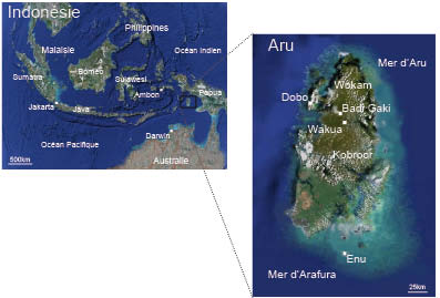 Quand on consulte une carte de l’Indonésie, un minuscule archipel s’égrène tout au sud-est de ses frontières, coincé entre les imposantes Australie et Papouasie: ce sont les îles Aru. Un groupe d’îles hors de tout. Hors du temps, souvent hors des guides touristiques, donc hors des sentiers habituellement parcourus. Pourtant, ce petit archipel de quelques 6’500km2, peuplé d’à peine 40'000 personnes aux origines mélanésiennes parsemées d’influences diverses (arabe, malaise, chinoise et même européenne), est riche d’une nature exubérante. Si la forêt fournit en relative abondance viande et plusieurs espèces chassées pour leurs plumes, ce sont surtout les rivières et la mer qui fournissent l’essentiel des ressources de l’archipel: pêche industrielle, culture de perles, élevage de concombres de mer, chasse aux requins pour leurs ailerons, récolte des œufs de poissons volants… Et à l’extrême sud-est d’Aru, juste avant que la mer ne devienne australienne, il n’est pas rare de croiser des bateaux balinais venus chercher par dizaines les tortues qui pondent sur les plages des îles sacrées Enu-Karang.